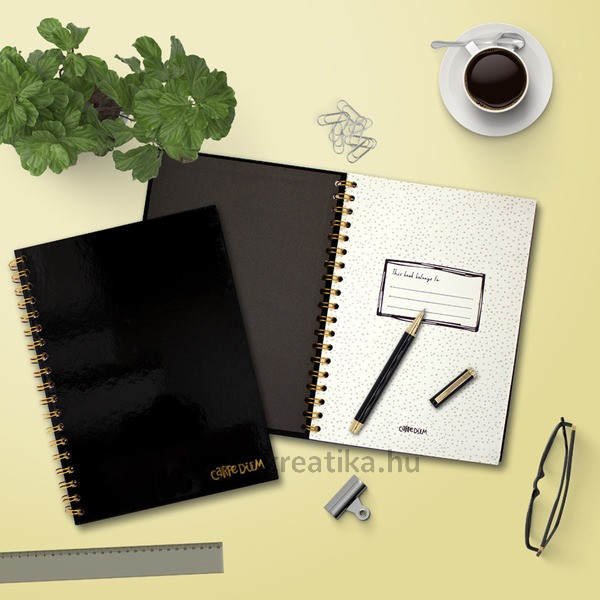 Spirálfüzet B/5 80 lapos, vonalas Pukka Pad "Carpe Diem" fekete