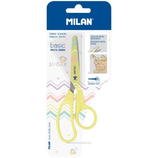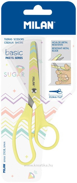 Olló, iskolai 13,3 cm Milan "Basic" Pastel sárga
