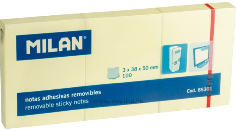 Öntapadó jegyzettömb 38x50 mm 100 lap Milan sárga