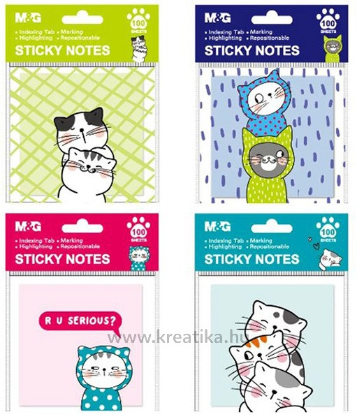 Öntapadó jegyzettömb 76x76 mm 100 lap M&G "So Many Cats" vegyes színek