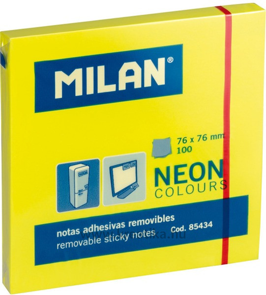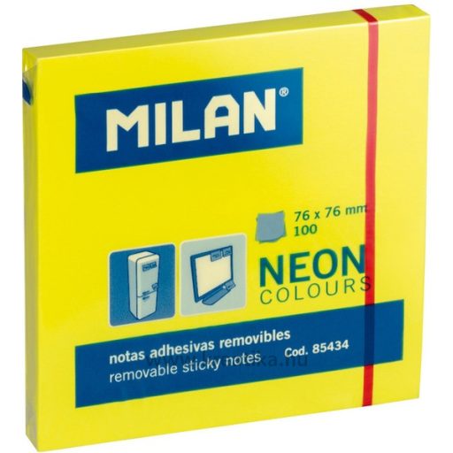 Öntapadó jegyzettömb 76x76 mm 100 lap Milan neon sárga