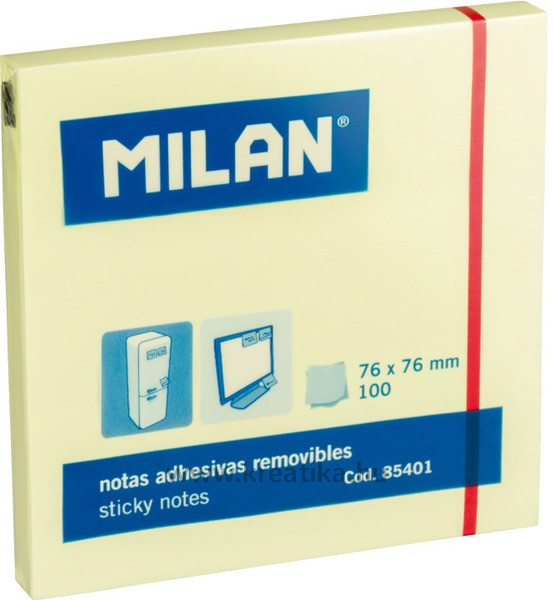 Öntapadó jegyzettömb 76x76 mm 100 lap Milan sárga