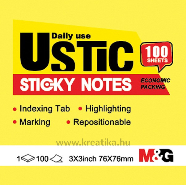 Öntapadó jegyzettömb 76x76 mm 100 lapos M&G "Ustic" sárga