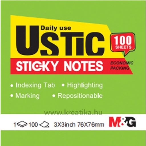Öntapadó jegyzettömb 76x76 mm 100 lapos M&G "Ustic" zöld