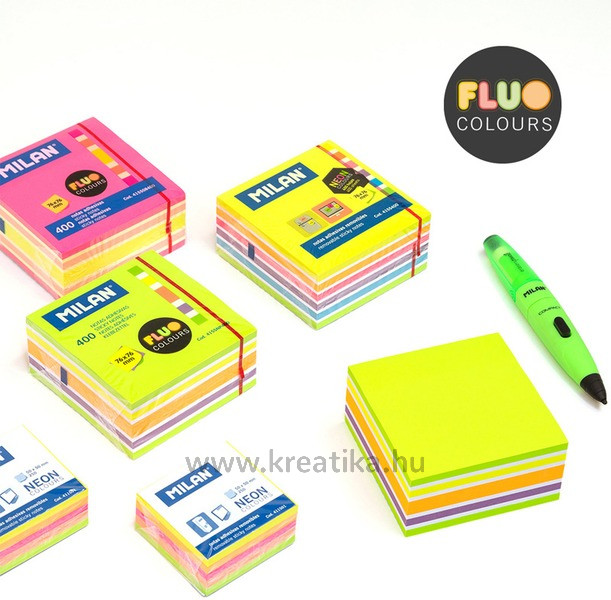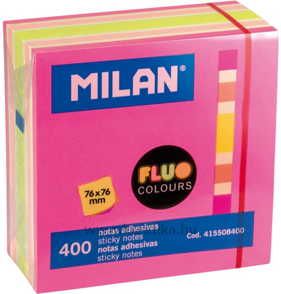 Öntapadó jegyzettömb 76x76 mm 400 lap Milan fluo színek