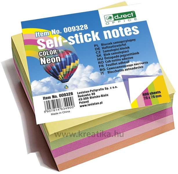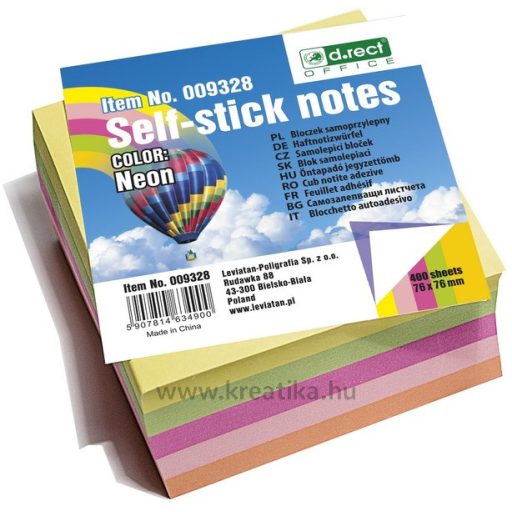 Öntapadó jegyzettömb 76x76 mm 400 lap d.rect neon színek