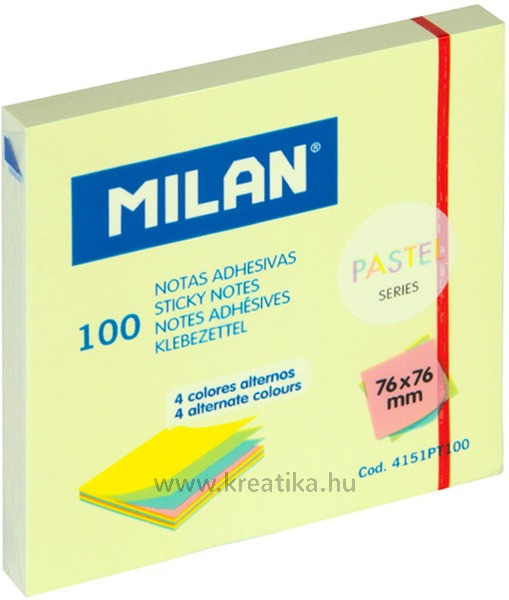 Öntapadó jegyzettömb 76x76 mm 4x25 lap Milan pasztell színek
