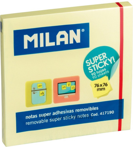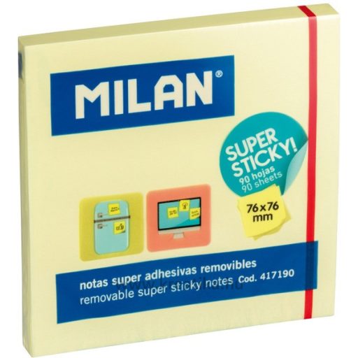 Öntapadó jegyzettömb 76x76 mm 90 lapos Milan sárga