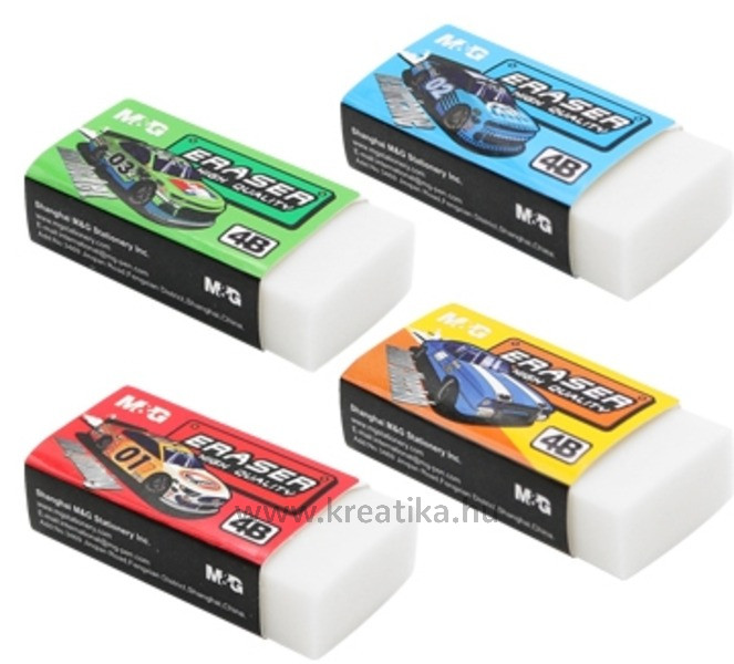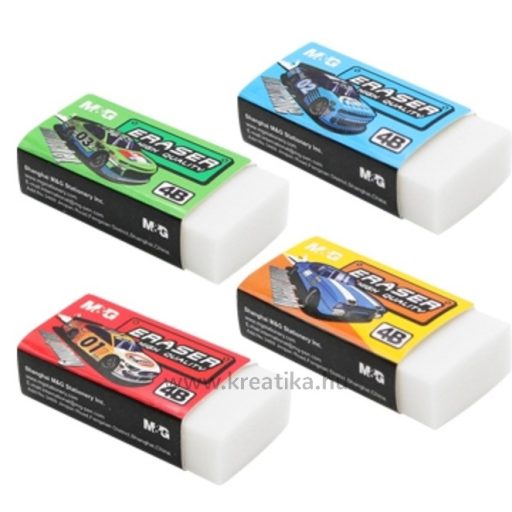 Papírtokos, versenyautó mintájú radír, egyesével csomagolt.
