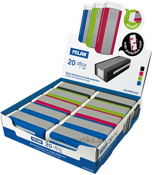 Radír, műanyag tokos Milan 320 "Office" vegyes színek