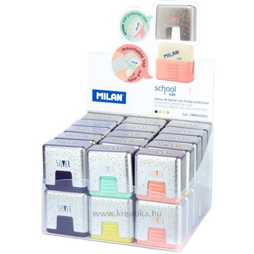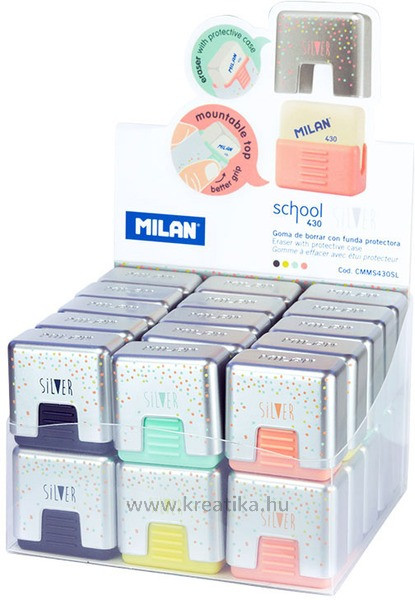 Radír, műanyag tokos Milan 430 "Silver" vegyes színek