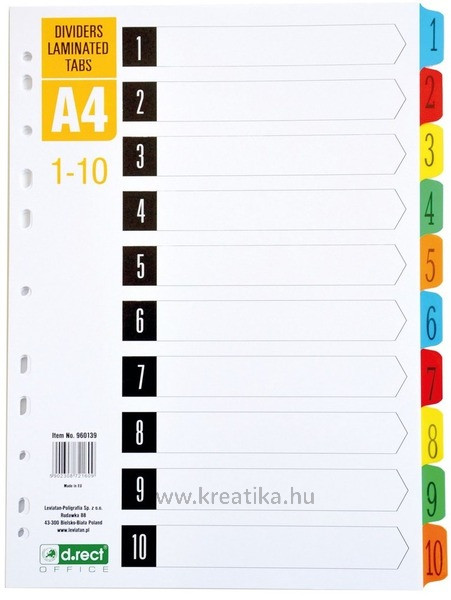 Praktikus megoldás az iratok jobb rendszerezésére, kikeresésére. Minőségi karton alapanyag. Laminált regiszterek. 11 lefűzőlyuk. 10 részes.