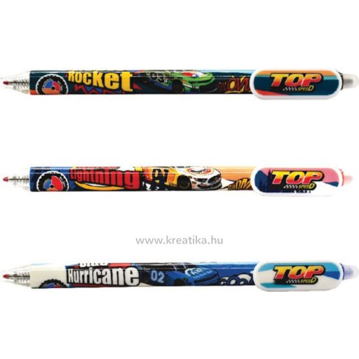 Műanyag, vékony tolltest. Kupakos kivitel. A kupak, illetve a tolltest végén található radírral a roller írásképe nyomtalanul kitörölhető. 0,5 mm es golyóátmérő.