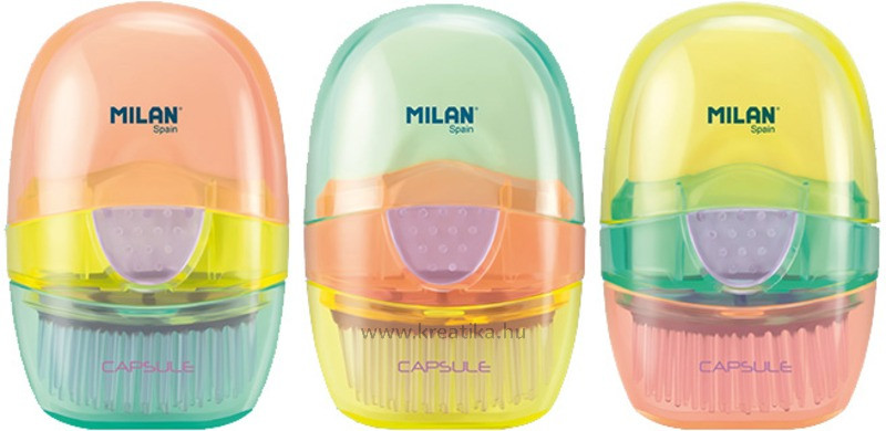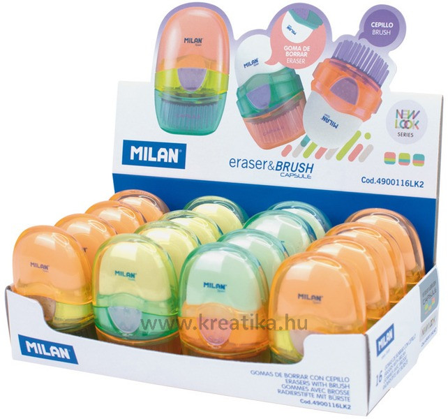 Kétfunkciós radír: egyrészről radírozásra, másrészről gumi hatású seprűjének kösözönhetően a radírtörmelék eltávolítására alkalmas. Mind a radírt, mind a seprű részt kupak védi.