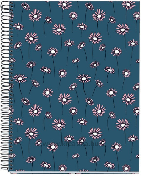 Spirálfüzet A/4 4x30 lapos, négyzetrácsos MQ "Daisies" kék