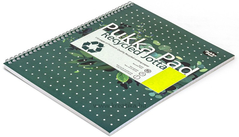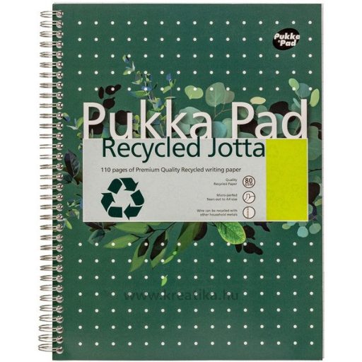 Spirálfüzet A/4 55 lapos, vonalas, újrahasznosított Pukka Pad "Recycled Jotta" zöld