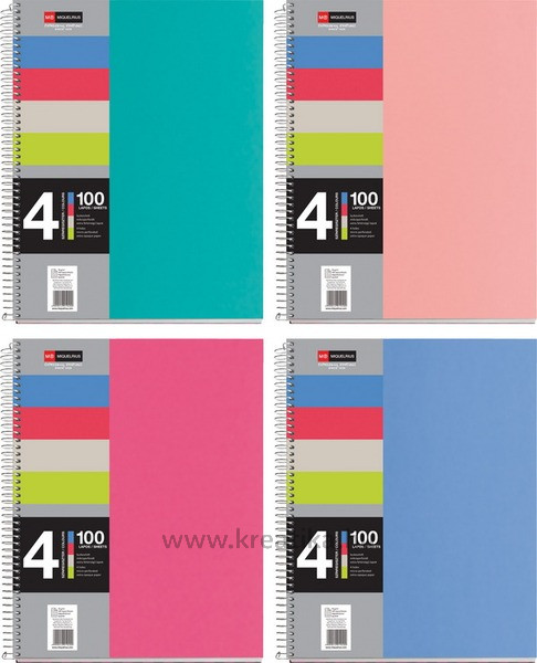 Spirálfüzet A/5 4x25 lapos, négyzetrácsos MQ "Notebook" 4