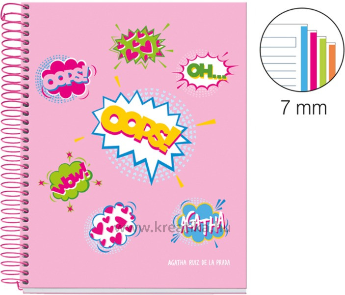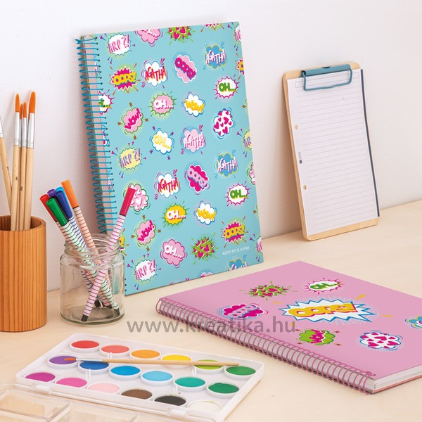 Spirálfüzet A/5 4x30 lapos, vonalas MQ "Wow" rózsaszín