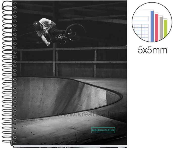 Spirálfüzet A/5 4x35 lapos, négyzetrácsos MQ A/5 "Skate Park