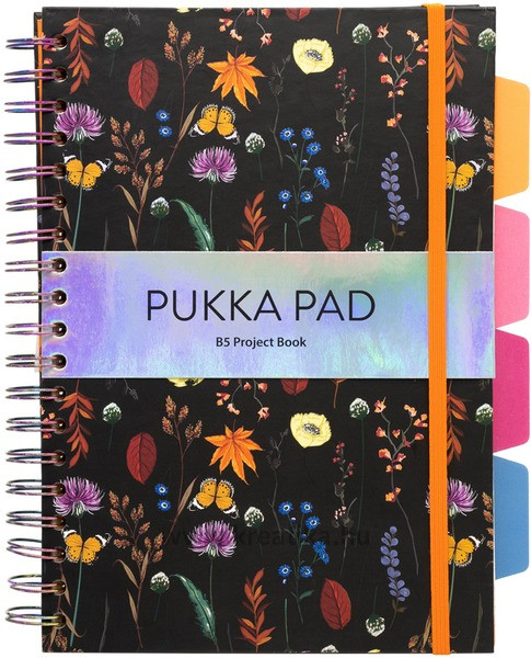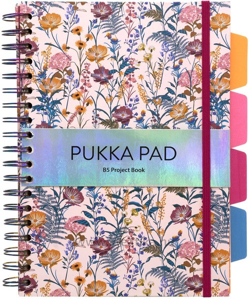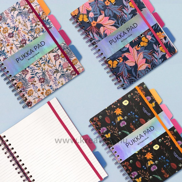 Spirálfüzet, B5, vonalas, 100 lap, PUKKA PAD Project Book Bloom, vegyes minta .