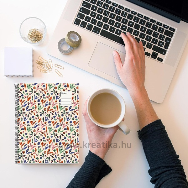 Spirálfüzet A/4 4x25 lapos, négyzetrácsos MQ "Leaves" Garden