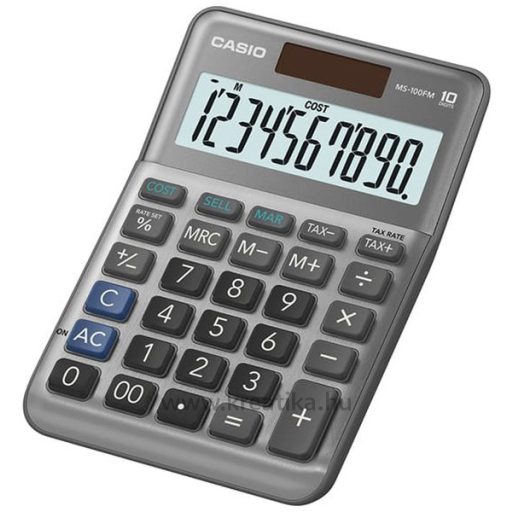 10 számjegyű, NAGY DÖNTÖTT KIJELZŐ, ÁFA számítás, bekerülési ár/ eladási ár / árrés számítás, elem+napelem, fémház, "00", %, +/-