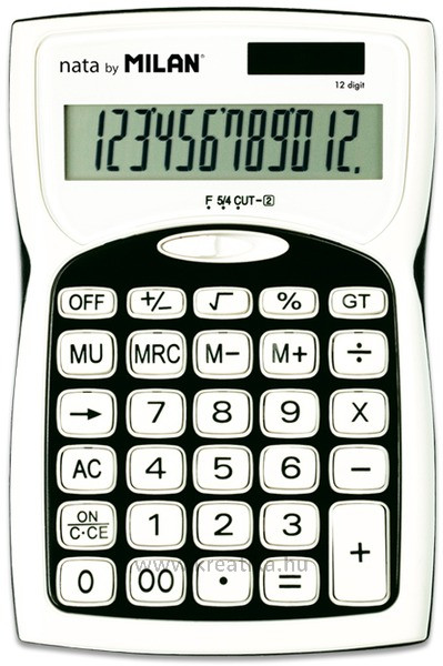 12 számjegyes asztali számológép. Nagy döntött kijelzővel. Automatikus kikapcsolás. Százalékszámítás. Teljes összeg megtekintése/törlése. Memóriafunkció. Adatbevitel helyesbítése. Elem+napelem.