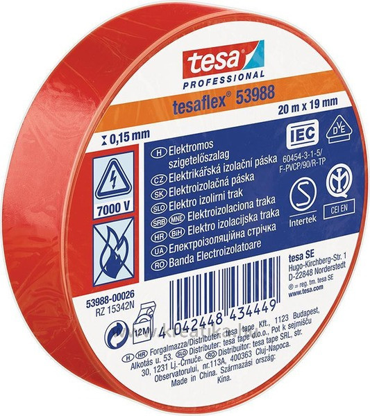 Szigetelőszalag 19 mm x 20 m TESA piros