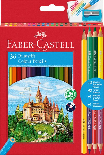 Színesceruza készlet, ajándék hegyező Faber-Castell "Classic" 36+3+1 szín