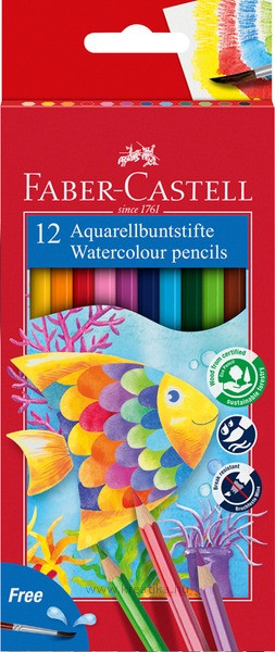 Színesceruza készlet akvarell, ajándék ecset Faber-Castell 12 szín
