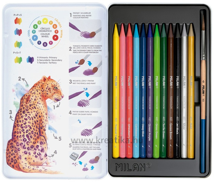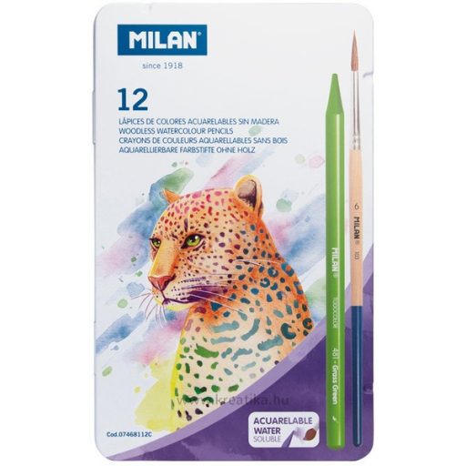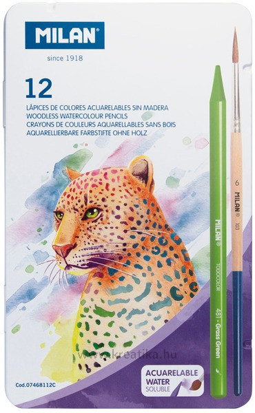 Színesceruza készlet famentes, fém dobozos, ajándék ecset Milan 12 szín