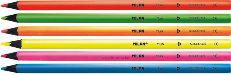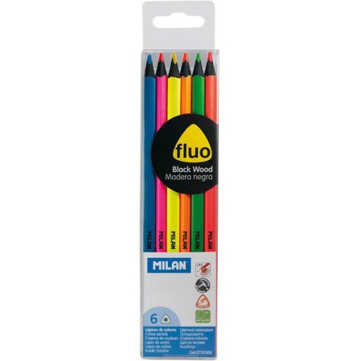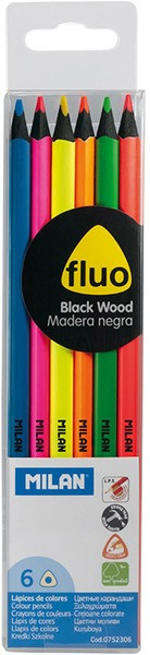 Színesceruza készlet fekete fa, háromszög test Milan 6 fluo szín
