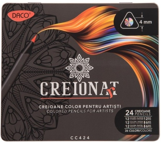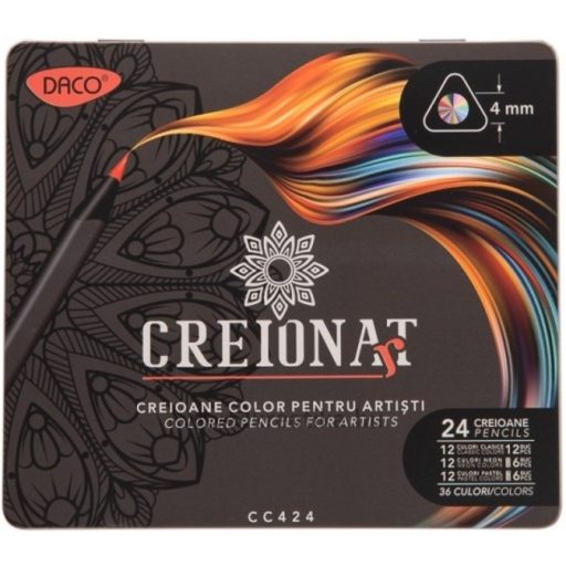 Színesceruza készlet fém dobozos Daco "Creion Art" 24/36 szín