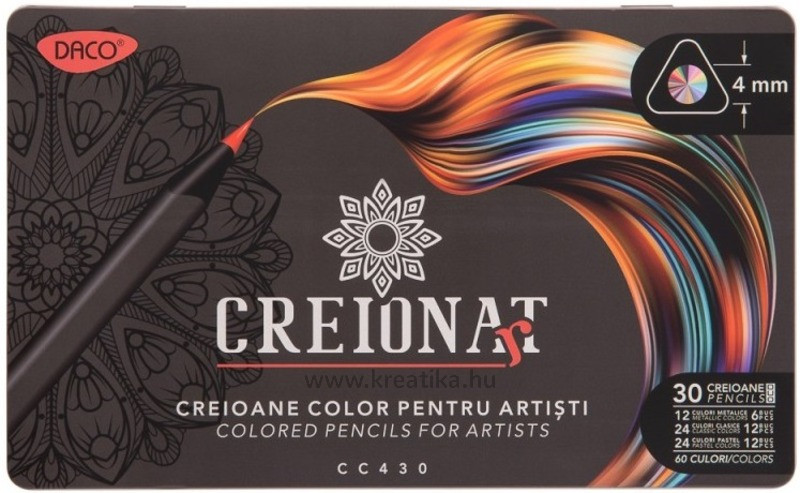 Színesceruza készlet fém dobozos Daco "Creion Art" 30/60 szín