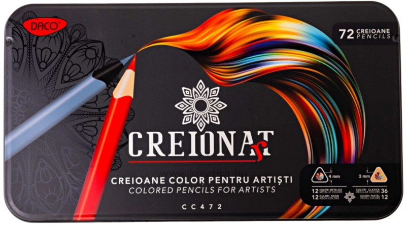 Színesceruza készlet fém dobozos Daco "Creion Art" 72 szín
