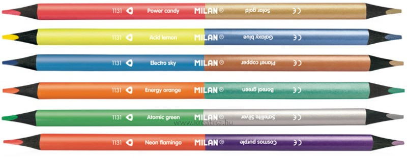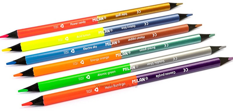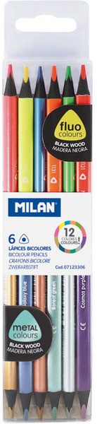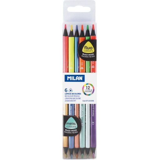 Színesceruza készlet kétvégű, fekete fa, háromszög test Milan 6/12 fluo és metál szín