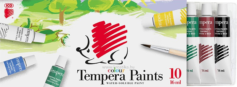 Élénk, selymes színű tempera. Tubusos kiszerelés, papírdobozban. 10-es kiszerelés.