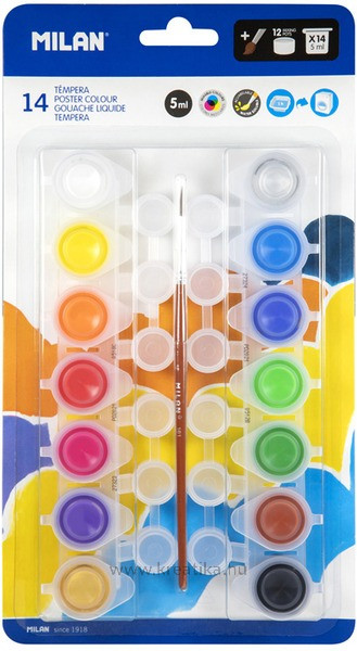 Tempera készlet 5 ml 12 db keverő tégellyel Milan 14 szín