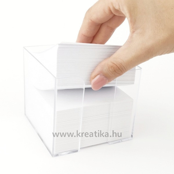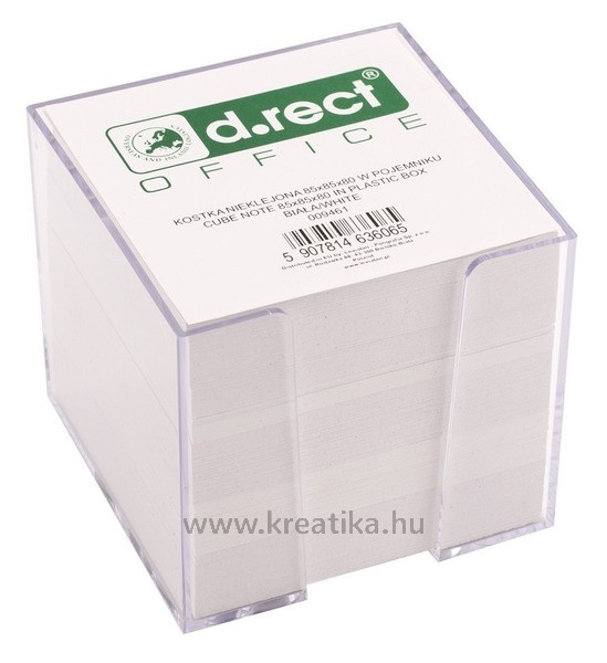 Tépőtömb 8,5x8,5x8 cm műanyag tartóban d.rect fehér