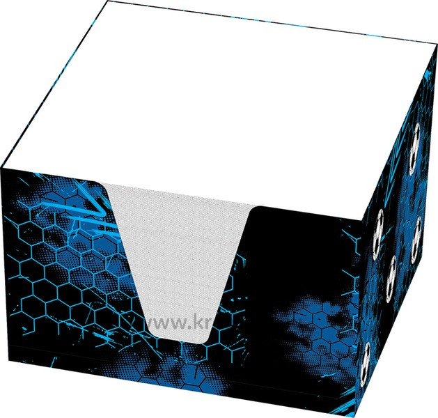 Tépőtömb fehér papírból, mintás papírdobozban. Információk, üzenetek gyors rögzítésére. Méret: 9 x 9 x 6 cm