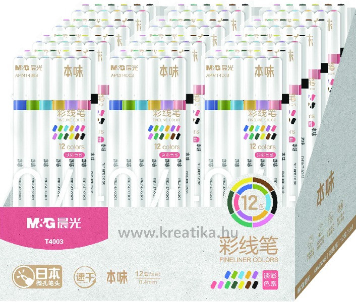 Tűfilc készlet 0,4 mm M&G "Fineliner" 12 szín