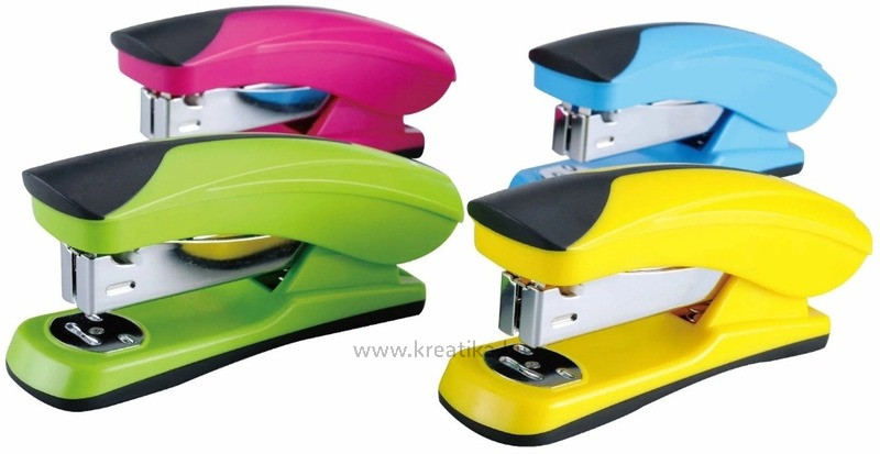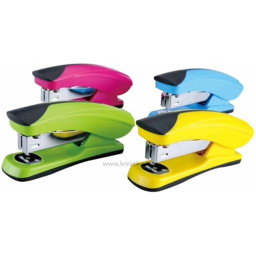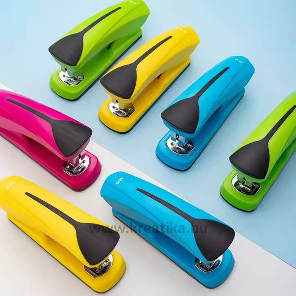 Divatos színű és megjelenésű, ergonomikus irodai tűzőgép. Műanyag, gumírozott fogórész. Fém szerkezet. Tűzési mélység: 50 mm. Lapkapacitás: 20 lap.