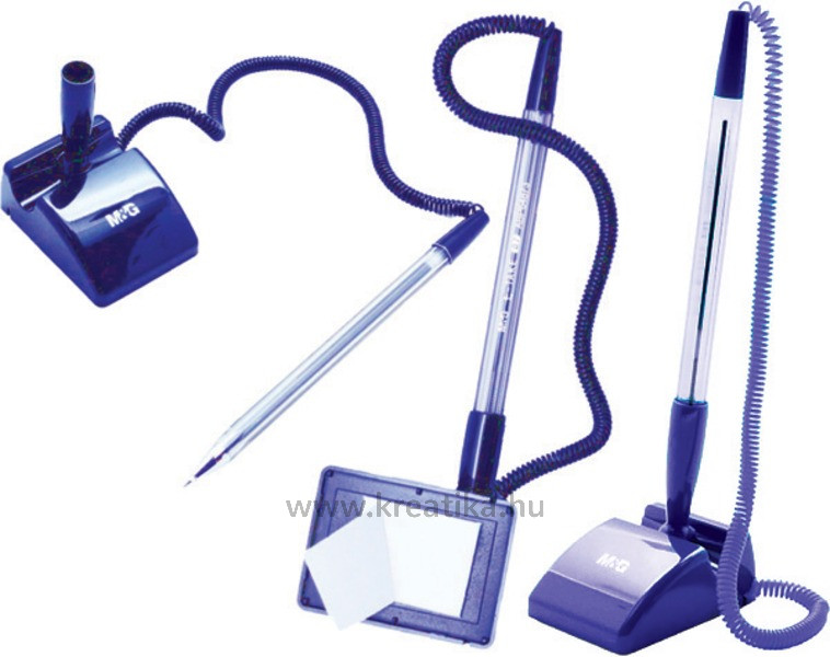 Műanyag tolltest és talp. Színes, bordázott fogórész. Hivatalokban, postán, bankban használatos rögzíthető ügyféltoll. Kék tinta. 0,7 mm es golyóátmérő.