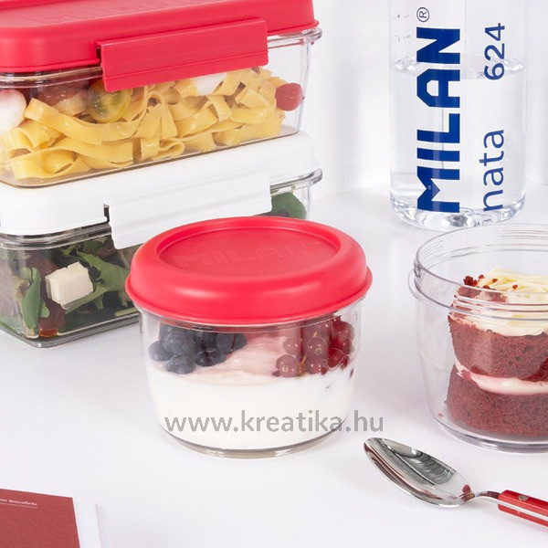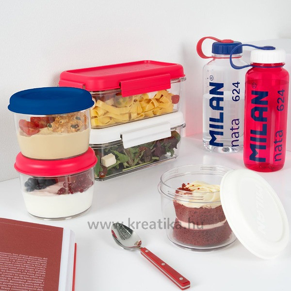 BPA mentes, törhetetlen és újrahasznosítható tritán műanyag alapanyag. Nem veszi át a szagokat, ízeket. Mikrohullámú sütőben melegíthető, max 80°C fokig. Hűtőben tartható, max. -20°C fokig. Mosogatógépben mosható, max. 80°C fokig.