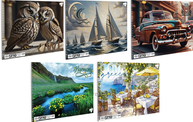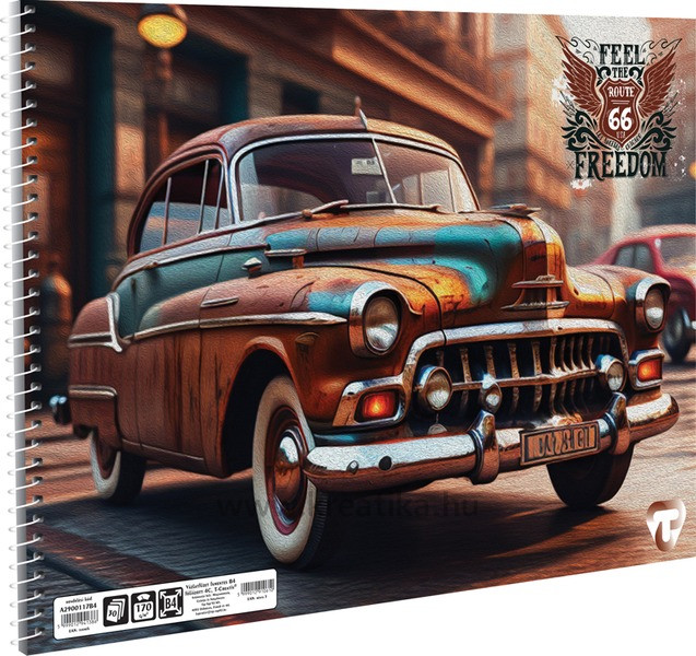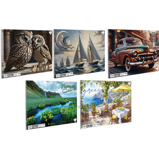 275 g-os, fényes fóliázott, mintás borító. 170 g-os fehér belív. 30 lapos, szimpla spirálozás.