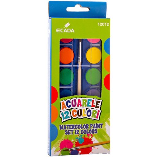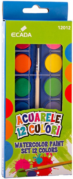 Vízfesték 23 mm, ajándék ecset Ecada 12 szín