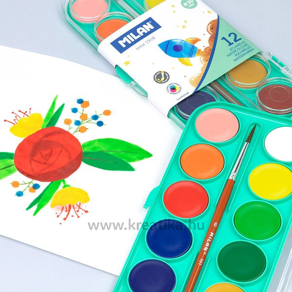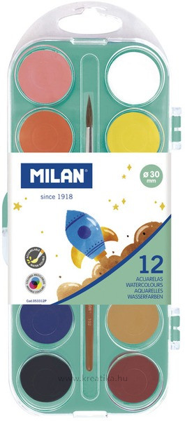 Vízfesték 30 mm, ajándék ecset Milan 12 szín