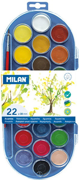 Vízfesték 30 mm, ajándék ecset Milan 22 szín