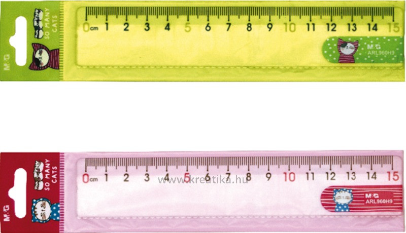 Műanyag színes vonalzó. So many cats minták. Egyesével csomagolva.