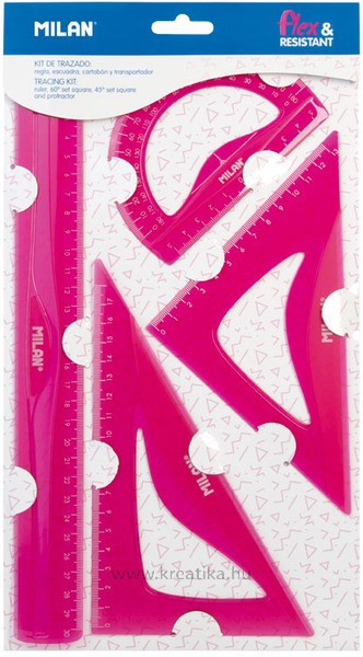 Vonalzókészlet 4 db-os Milan "Flex" Acid rózsaszín